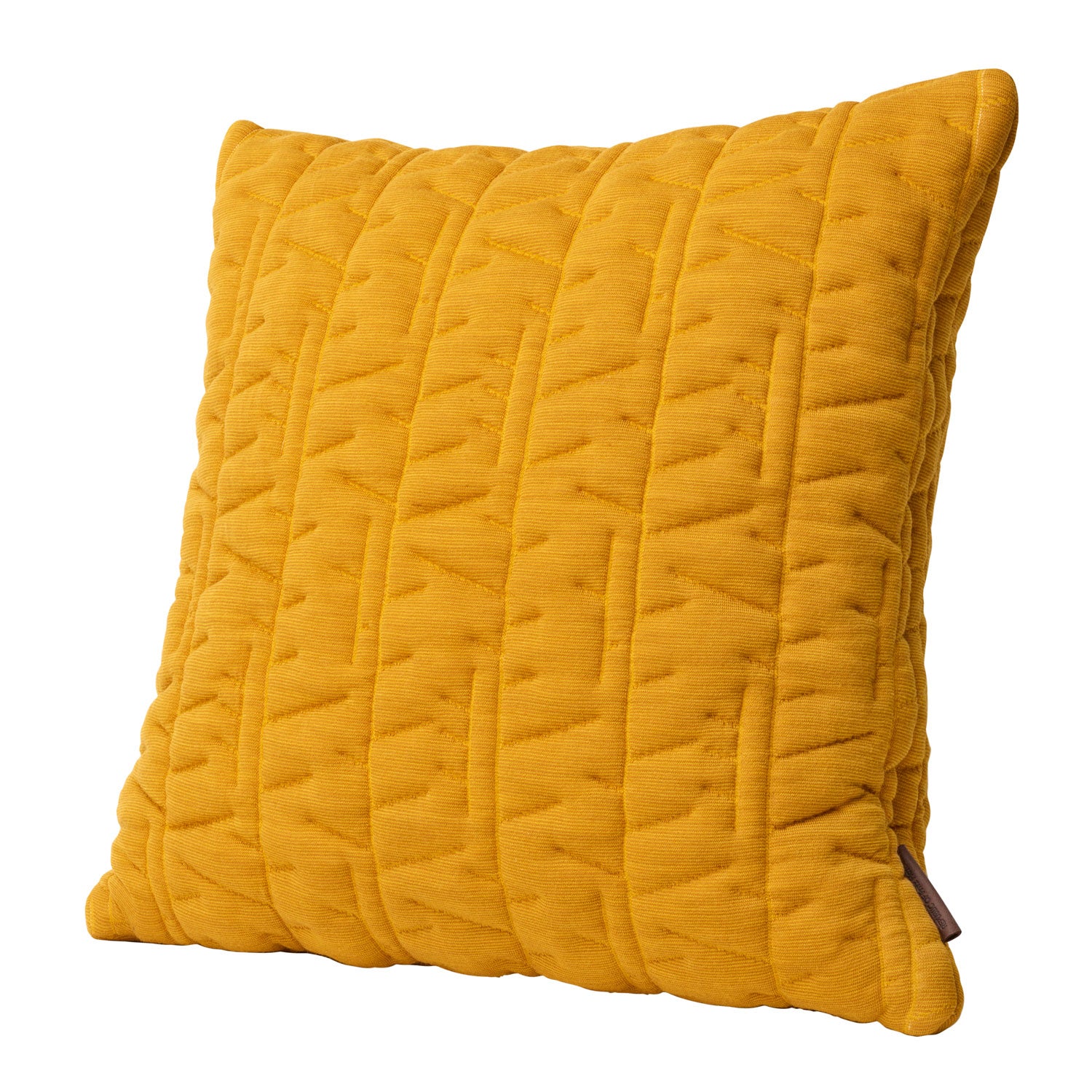 Tassel puten har et distinktivt mønster skapt på en matematisk måte, men samtidig med et avslappet og uregelmessig utseende. Uregelmessigheter møter det vakre i oker gult.