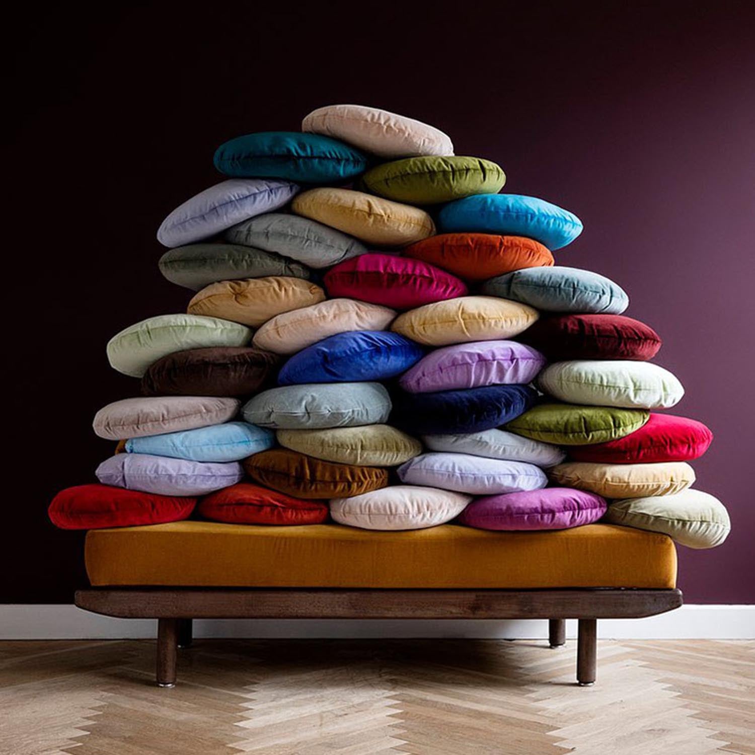 Hver av disse putene er laget på bestilling og blir sydd i Danmark. Alt stoff er hentet i Europa og hver pute har et dyrevennlig og antibakterielt dunfyll. Kvaliteten på produktene er enestående og hun fullfører fortsatt hver pute selv for hånd og sørger for at hver og en er perfekt.
