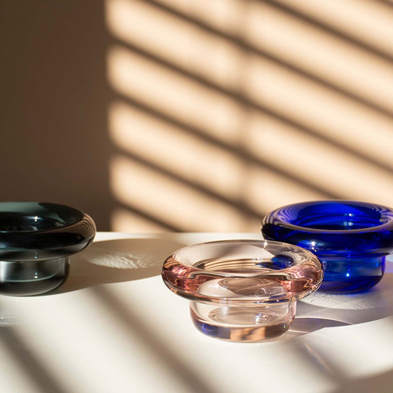 Andersen & Voll har brukt flere år på å få til denne flotte telysestaken slik at det tunge glasset virkelig skinner i solen og står like flott som en glass skulptur som en telysholder.