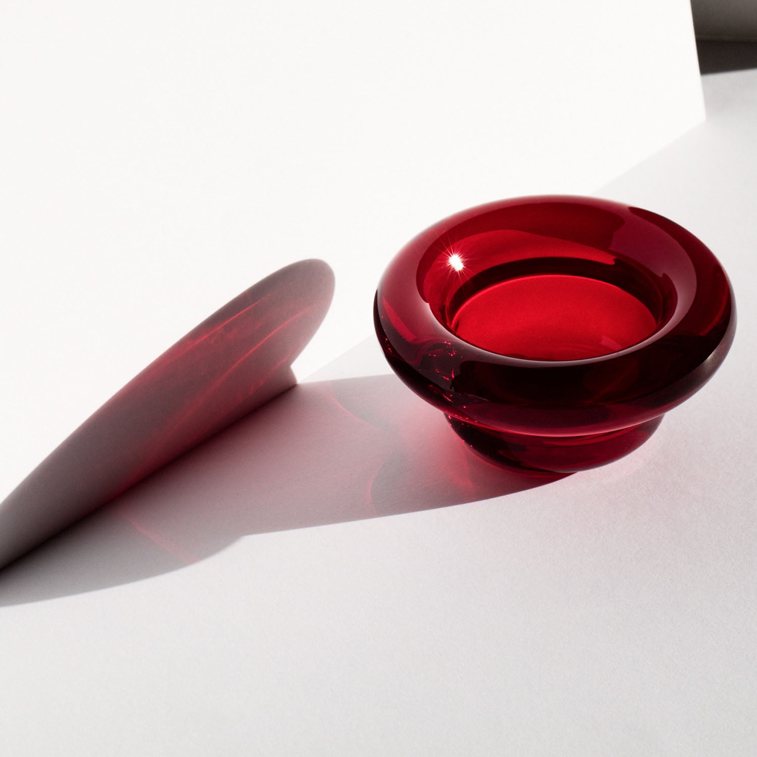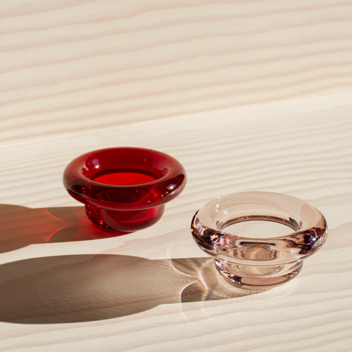 Andersen & Voll har brukt flere år på å få til denne flotte telysestaken slik at det tunge glasset virkelig skinner i solen og står like flott som en glass skulptur som en telysholder.