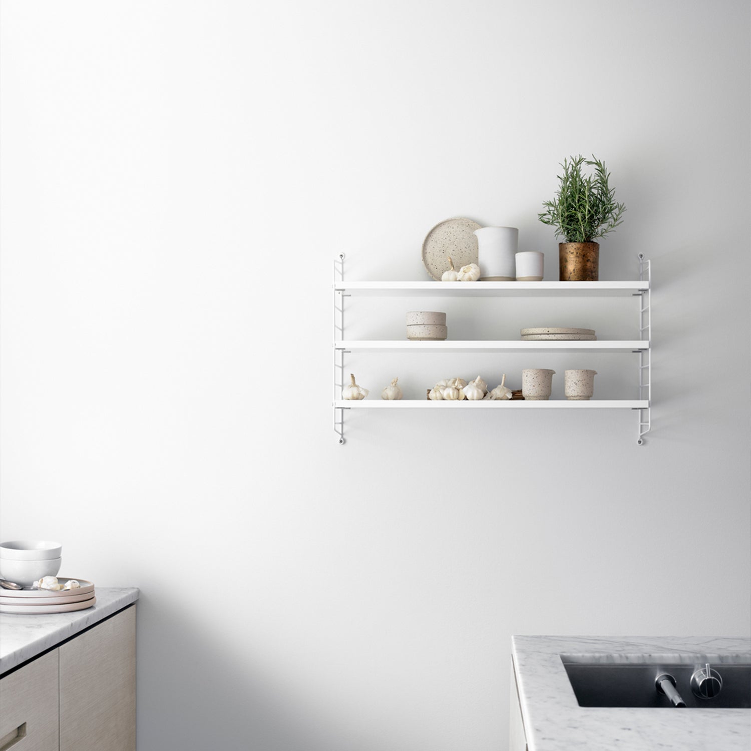 Med hyller fra String kan du bygge deg din helt egen String hylle. Du kan mikse og matche farger, størrelser og de kan brukes på hvilket som helst rom. Ny krydderhylle på kjøkkenet? En liten bokhylle over sofaen på stua? Eller hva som nattbord på soverommet?